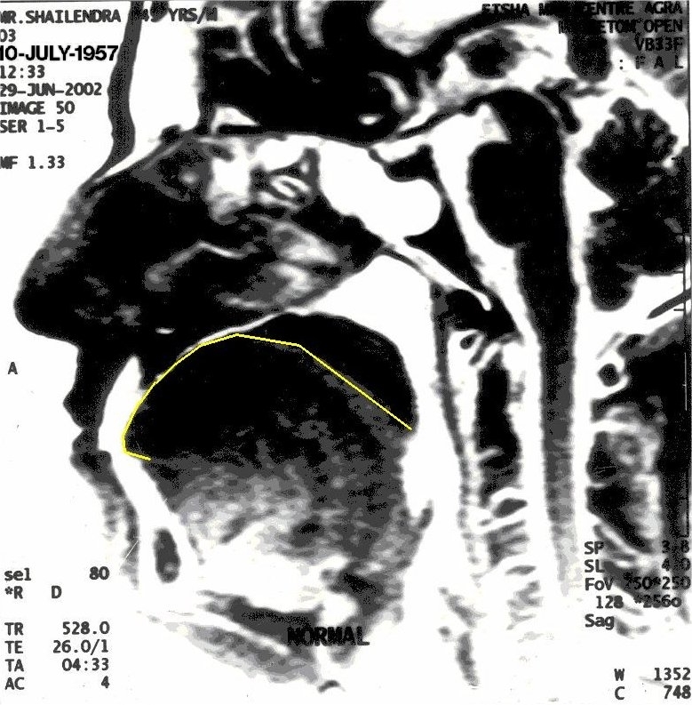 Before Khechari Mudra The position of tongue is outlined in yellow