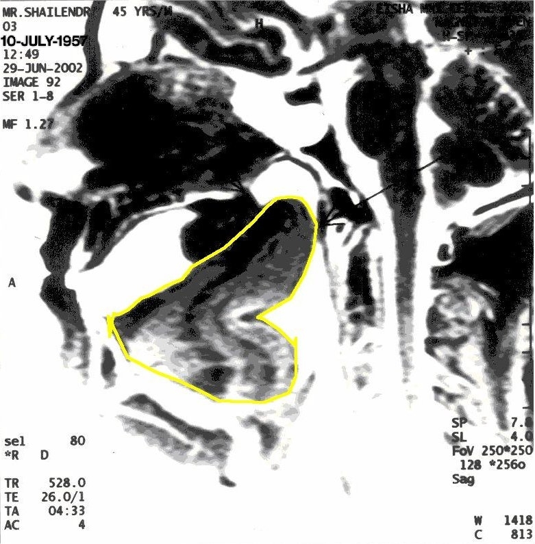 Before Khechari Mudra The position of tongue is outlined in yellow